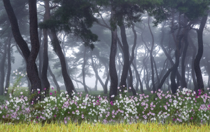 형형색색으로 활짝 핀 코스모스는 나무와 대조되며 그림 같은 풍경을 자아낸다. 이곳은 속리산국립공원과 속리산말티재자연휴양림과 가까워 두루 둘러보기 좋다.