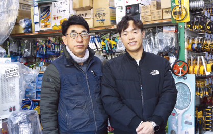 포항에서 3대째 공구철물점을 운영하고 있는 양진수 대표와 아들 양삼근 이사. 오랜 세월 매장의 성장을 이끌어 올 수 있던 것은 끊임없는 도전 덕분일 것이다.