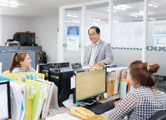 “군대에 있을 때 월남전에 참가해 공병보급병으로 근무했는데, 그게 내 인생의 전환점이 됐어요. 제대 후 곧바로 청계천에 사무실을 내고 오파상 겸 도매판매를 시작했지. 그래서인지 지금도 무창을 수입만 하는 회사로 알고 있는 분들이 많은데 지금은 수입이 40%, 국산제품 유통이 60% 됩니다.”