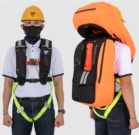 • 추락/충격 감지 에어백 : 고소작업 중 추락이 감지되면 내장된 에어백이 0.18초 이내로 빠르개 팽창해 주요 신체를 보호한다.