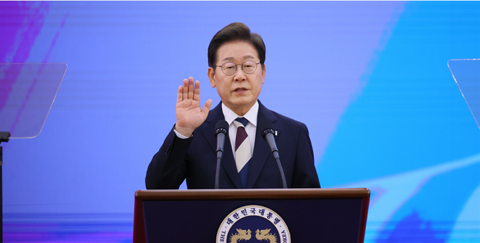 제21대 이재명 대통령이 오늘 공식 취임하고 국정 운영의 새 막을 올렸다. 이 대통령은 취임사를 통해 “모든 국민을 아우르고 섬기는 모두의 대통령이 되겠다”며 ‘정의로운 통합정부, 유연한 실용정부’를 국정 기조로 강조했다. 주요 정책으로는 취임 직후 ‘비상경제대응TF’를 지시하며 민생 경제 회복을 최우선 과제로 삼았다. 또한, 취임 일성으로 ‘산업재해와의 전쟁’을 선포하고 안전 강화를 강조했으며, 민생회복 소비쿠폰 지급을 포함한 민생 지원책을 추진했다. 지방자치단체를 ‘지방정부’라는 용어로 사용하며 지방분권 및 균형 발전 의지를 피력했다. 이재명 정부는 취임 초기부터 민생 경제 회복과 첨단 기술 경쟁력 강화를 위한 정책 실행에 속도를 내고 있다.