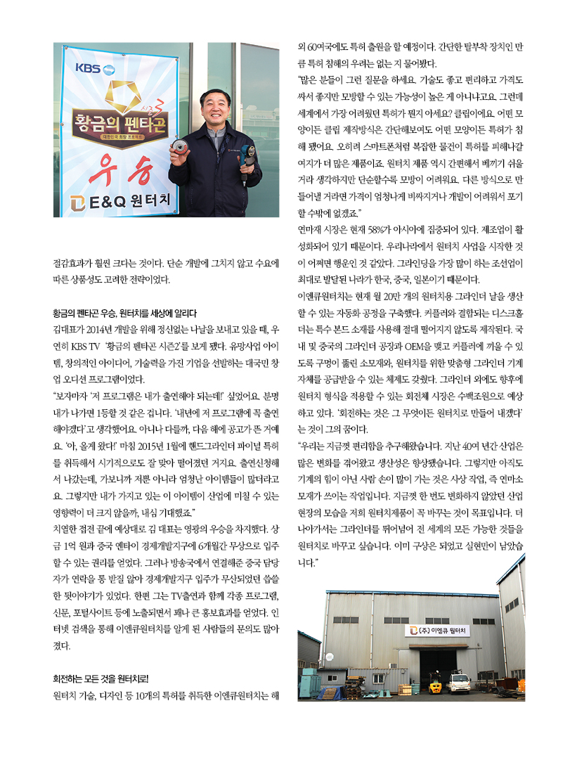 창업오디션 KBS 황금의 펜타곤 우승 (주)이엔큐원터치 김창성