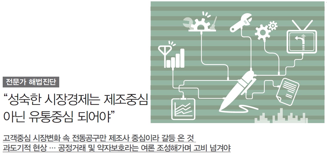 따라서 누가 힘을 가지는 게 옳다 그르다를 떠나 현재 전동공구업계의 문제는 유통사들이 입장을 모아 제조사와 협상할 수 있는 자체 집결력이 중요해 보인다. 협회 차원의 제재조치가 먹혀들 수 있도록 협회 파워도 있어야 하고, 제조사 자체적인 변화노력도 필요하다. 당장의 근시안적 효과만 보지 말고 한국시장에서 오래도록 살아남을 수 있는 ‘동반자적 시각’이 중요하다. 이를 위해 당장 기댈 법 조항이 없다면 동반성장과 약자보호, 공정거래라는 여론을 형성하는 것도 꼭 필요하다고 전문가들은 지적하고 있다.