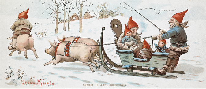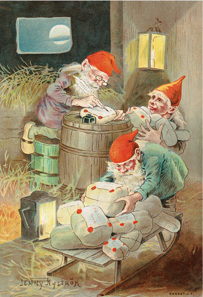 산타를 그렸던 여러 화가 중, 지금으로부터 100여 년 전 세상의 다양한 산타클로스를 그렸던 스웨덴 화가 제니 나이스트롬(Jenny Nyström, 1854~1946)을 소개한다. 아동 도서 일러스트 분야의 선구자이기도 한 그녀는 긴 옷과 털모자, 수염을 가진 요정 ‘톰테’(훗날 산타클로스로 발전)를 그려 스웨덴의 크리스마스 이미지를 만들어낸 화가다.