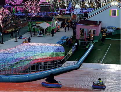 프랑스 남동부의 작은 마을 프로방스의 정취를 그대로 옮겨온 이곳은 청도의 대표 겨울 명소다. 알록달록한 건물과 아기자기한 소품이 어우러진 낮에는 100여 가지 포토존이, 밤에는 수만 개의 조명이 빛나는 빛축제가 전혀 다른 매력을 선사한다. 산타포토존과 루돌프 거리가 새롭게 조성되어 반짝이는 트리 아래에서 산타클로스, 요정, 루돌프 사슴을 만날 수 있다. 평일에는 저녁 7시·8시, 주말 및 공휴일에는 6시, 7시, 8시에 눈이 내리며, 점등 시간은 오후 5시 30분이다. 로맨틱한 감성과 가족의 따뜻한 웃음이 공존하는 이곳에서, 사계절 썰매장과 회전목마, 에어버스 등 다양한 놀이기구를 즐기며 특별한 겨울 추억을 만들어보자.