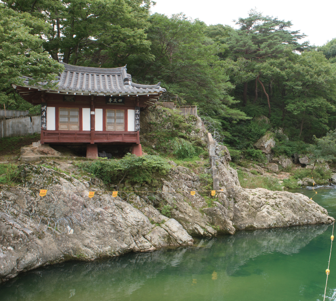 사우정을 바라봤을 때 아담한 시멘트 다리 오른쪽은 수심이 엄청 깊어 입수가 금지되어 있지만, 왼쪽은 물놀이하기에 적당한 깊이로 일어나자마자 자리에서 쫓겨난 멤버들이 더위와 피로를 풀기 위해 풍덩풍덩 뛰어든 곳이다. 이곳에서 계곡을 따라 안쪽으로 더 들어가면 본격적으로 쌍룡계곡이 펼쳐져 있고, 다리 건너에는 계곡 주차장이 있다. 넓은 계곡 한복판에 소나무가 불쑥불쑥 솟아난 모습이 이채롭고, 바위 틈틈이 물놀이하기에 딱 좋을 만큼의 물이 고였다 흐른다. 주차장에서 계곡 안쪽으로 2km가량 들어가면 심원사가 있어 산책하기에도 제격이다.