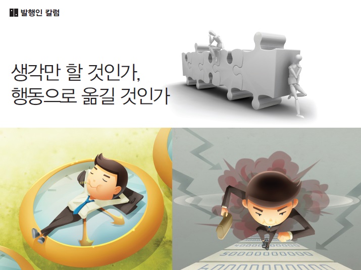 한때 우리회사 구호가 ‘나부터 지금부터 작은 일부터’였다. 내가 지금 할 수 있는 것은 지금 바로 하고, 그리고 거창하고 큰 것보다는 작은 일부터 일단 시작하자는 뜻이다. 직원들이 책상에서 많은 생각을 하기보다 작은 데서 힌트를 찾아서 직접 행동으로 해보기를 바랐기 때문이다. 조그맣고, 간단하고, 쉬운 것을 해보면 다음에는 더 큰일을 할 수 있다. 실패하더라도 행동하기를 두려워말고 도전해보기를 바란다.
