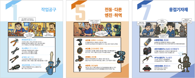 - 공구제품에 대한 설명부터 제품사용 장면까지 넣고, 이를 또 만화로 구현해 ‘누구나 알기 쉽도록’ 만들었다. 제품의 선택기준과 비교표, 규격, 용어정리, 작업팁까지 곁들여 공구를 올바르게 활용하는 데 길잡이가 되도록 했다.