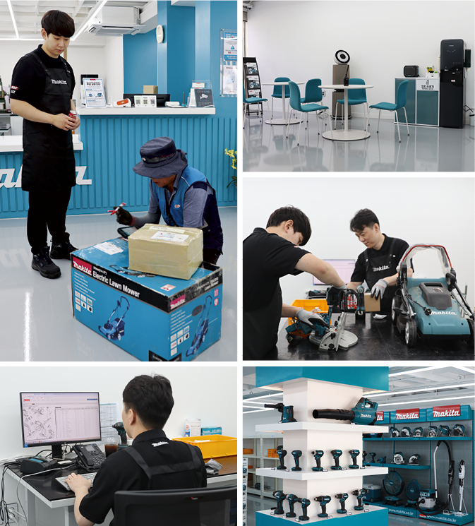 “제품 보증기간 내에는 무상수리는 물론 보증기간이 경과했거나 고객 과실에 따른 유상수리도 투명하고 신속하게 처리하고 있습니다. 1차 점검 후 예상 견적과 소요 시간을 실시간 안내해 고객 불안을 최소화하고 있어요. 저희 대전서비스센터는 직영인만큼 다양한 마끼다 부품을 확보하고 있습니다. 서울 본사와 실시간으로 부품의 재고 유무를 함께 공유하고 있죠. 그 결과 대전을 비롯해 충청 지역의 마끼다 제품 수리가 과거보다 신속해졌습니다. 이곳은 신제품 교육 및 AS기술 교육 장소로도 활용 되고 있어요.”