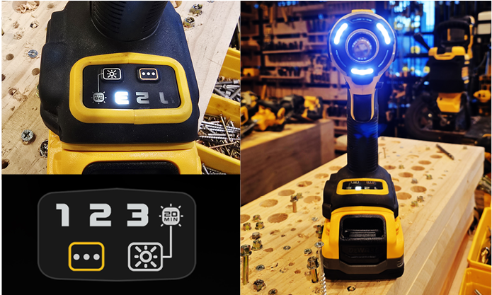 DCF860의 강점은 작은 크기와 큰 힘 그리고 제어력이다. 3단 속도 조절 모드를 통해 작업 성격에 맞게 출력 조절이 가능하다. 직관적으로 4가지 모드 선택이 가능한 스위치를 보유하고 있다. 1단의 경우 최대 토크 141Nm 최대속도 1800RPM, 2단은 중간 파워로 최대토크 242Nm 2500RPM, 3단은 최대 파워로 282Nm 3800RPM의 힘을 내뿜는다. 20초 혹은 20분 지속 발광 설정 가능한 LED라이트 버튼도 함께 있어 작업에 유용하다.