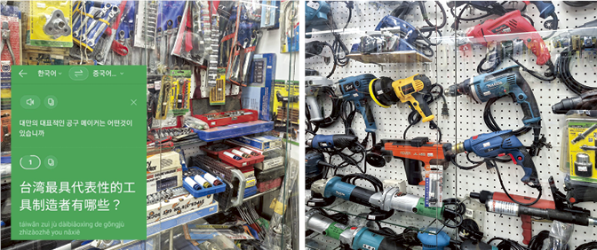 방문한 상점은 젊은 사장과 그의 모친이 운영하는 공구상이었다. 번역기로 나를 ‘한국에서 공구를 가르치는 교사인데 대만 공구상이 궁금해서 왔다’고 소개하자 반갑게 맞이해 주며 자신의 매장에 대한 설명을 해 주었고 사진 촬영도 허락해 주었다. 개업한지 20년이 넘었다는 이 매장에서는 여러 공구 메이커를 취급하고 있다고 했다. 젊은 사장은 부모님이 운영하던 매장을 이어받아 운영 중이라고 했다.