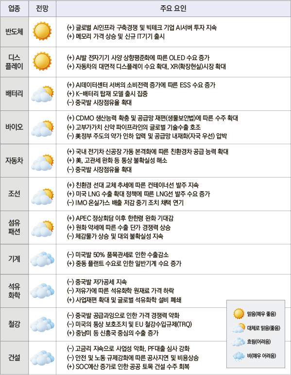 반도체·디스플레이 ‘맑음’, 배터리 ‘대체로 맑음’
