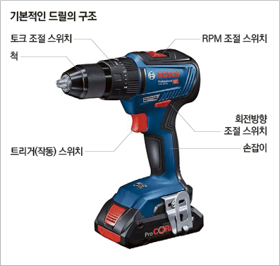 사용 전 먼저 드릴의 구조와 기능을 이해하고 재질과 상황에 맞는 비트·속도·토크를 선택하는