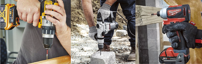 전동드릴은 크게 전동드릴과 임팩트드릴, 그리고 해머드릴로 나눌 수 있다. 임팩트드릴은 일반적인 전동드릴이 행하는 회전 운동에 더해 전·측면 타격 운동이 결합된 드릴이다. 전동드릴과 임팩트드릴 그리고 해머드릴은 각각의 특징이 다르므로 작업자의 작업 목적에 맞춰 선택해야 한다. 각종 드릴의 특징과 작업 시 유의사항, 드릴 관련 알아두어야 할 용어는 다음과 같다.