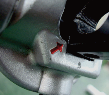 4) 1)번 손잡이 부분의 화살표와 3)번에 표시된 일치선을 맞추고 lock 한다.