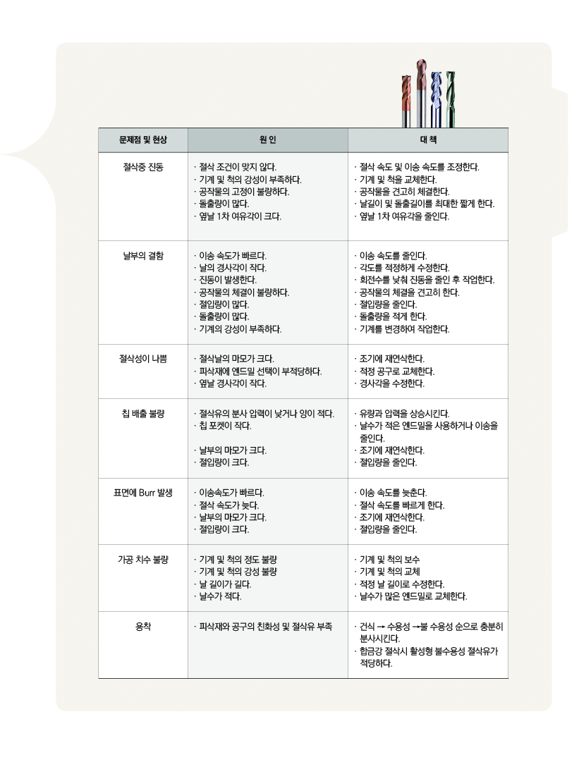 절삭공구 사용 시 발생할 수 있는 문제와 대응책