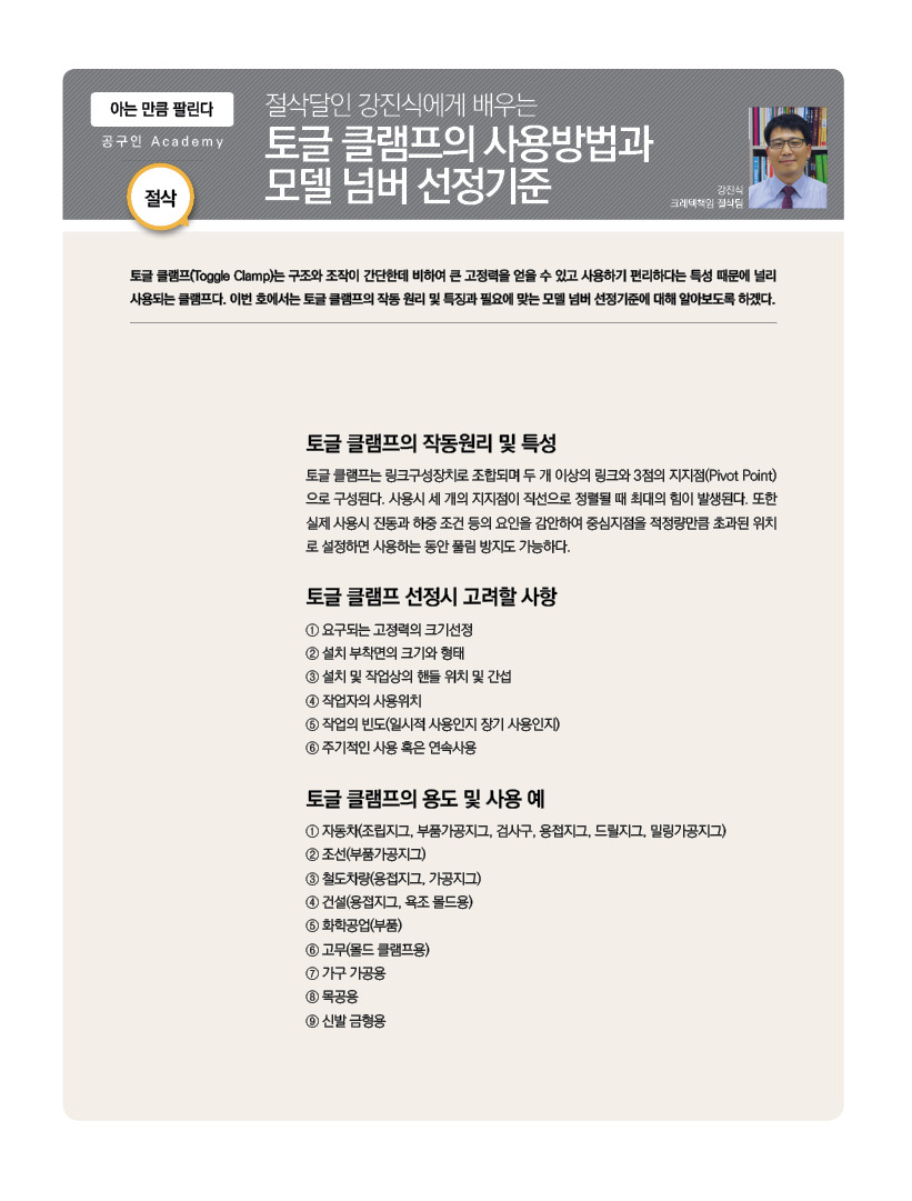 절삭달인 강진식에게 배우는 토글 클램프의 사용방법과 모델 넘버 선정기준