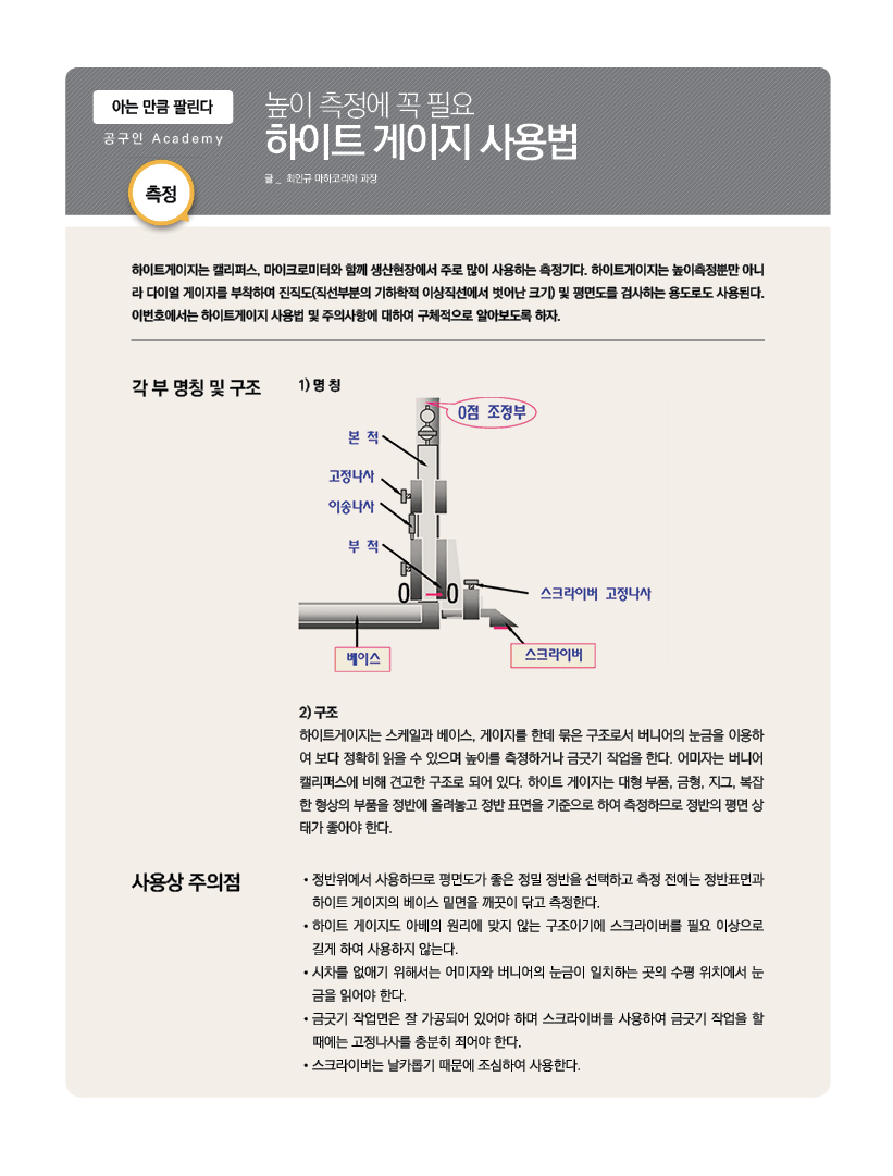 <월간 공구사랑 2016년 7월호> 하이트 게이지 사용법 및 주의사항