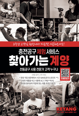 계양전기가 지난해 6월부터 운영 중인 현장 방문 충전공구 체험 서비스 ‘찾아가는 계양’이 전국 전문가 고객들로부터 긍정적인 반응을 얻고 있다. ‘찾아가는 계양’은 계양전기 전문 인력이 직접 작업 현장을 방문해 충전공구를 일정 기간 동안 자유롭게 체험할 수 있도록 지원하는 서비스로, 제품 구매 전 실제 작업 환경에서 성능과 내구성, 작업 편의성을 검증할 수 있다는 점에서 호평을 받고 있다. 실제 서비스를 이용한 고객들은 “현장에 직접 방문해줘 시간을 절약할 수 있었고, 다양한 제품을 비교 사용해본 뒤 구매를 결정할 수 있었다”(건물관리 로지스*** 관계자)고 평가했다. 또 다른 제조업체 관계자는 “공장을 둘러보며 작업에 적합한 제품을 추천해줘 실질적인 도움이 됐다”며 서비스 전문성을 높이 평가했다. 체험 가능한 제품은 ▲20V 충전 H-Series 15종 ▲16V 충전 탄창형 시리즈 7종으로, 지역이나 현장 특성에 관계없이 누구나 신청 가능하다. 체험은 신청 후 계양전기 직원이 현장을 방문해 제품을 전달하고, 2주간 자유롭게 사용한 뒤 회수 및 설문 조사를 진행하는 방식으로 운영된다. 체험 서비스에 지인을 추천하거나 온라인이나 SNS에 체험후기를 공유할 경우 ‘부품함’을 제공한다.
