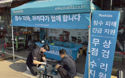 마끼다가 지난 7월 24일(목) ~ 25일(금) 이틀간 광주 지역에 집중된 침수 피해와 관련해, 피해 고객을 대상으로 현장 긴급 방문 및 무상 제품 교환 지원 활동을 전개했다.