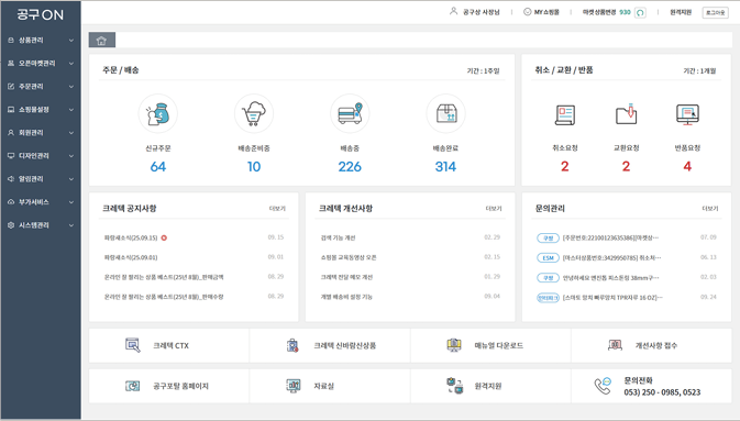 공구ON은 크레텍 주문시스템(CTX)과 연동돼 있다. 고객이 주문한 상품이 CTX에 바로 연결 주문, 직배송 처리되어 배송처리 업무를 별도로 할 필요가 없다. 뿐만 아니라 크레텍으로 직송처리를 할 경우 송장번호가 공구쇼핑몰과 오픈마켓에 자동 업데이트된다.