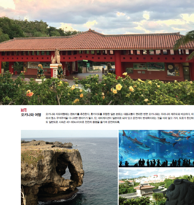 세계에서 2번째로 크고 아시아 최대 수족관인 ‘츄라우미 수족관’도 강추다. 세계 최대 아크릴 유리 패널로 만들어진 대형수조에서 고래상어, 쥐가오리 등 다양한 해양생물을 볼 수 있다. 오키나와 열대 대표과일인 파인애플을 주제로 테마파크가 조성된 ‘나고 파인애플 파크’도 대표 관광지다. 파인애플 전동카트를 타고 파인애플 농장을 체험하는 등 다채로운 놀거리가 풍부하다. 오키나와 원시림을 산책할 수 있는 ‘얀바루노모리’는 새롭게 주목받는 관광지다. 그밖에도 오키나와 전쟁의 아픔을 간직한 평화기원자료관, 한국인 위령탑 등 비극의 역사를 한 눈에 알 수 있는 명승지도 둘러보자.