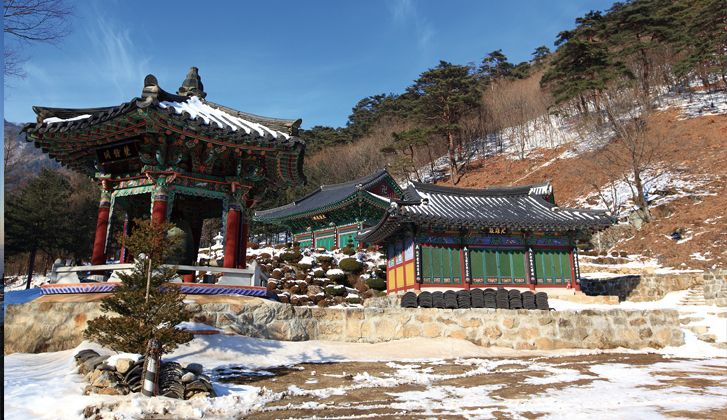 점심 때를 조금 넘어 소백산 자락에 차분히 안겼다. 죽계구곡을 거슬러 올라 탐방지원센터를 지났다. 여기서부터 초암사까지 2시간. 비교적 평탄한 길을 꾸준히 걸으니 이내 등부터 땀이 차기 시작했다. 오후 3시 40분. 조금은 늦은 감을 안고 산세에 붙었다. 초암사에서 국망봉 갈림길까지는 4.1km. 흔한 산길이라면 2시간 거리다. 한데 변수 많은 겨울 산일 뿐더러 능선까지 무려 1,000m나 되는 고도를 꾀부리지 않고 올라야 했기에 만만치 않은 산행이 되리라는 예감은 분명한 것이었다.