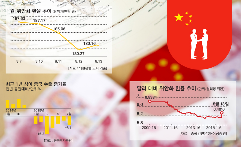 정리_장여진 · 참고자료_현대경제연구원 보고서 ‘중국 위안화 평가절하의 국내수출 파급영향’ 등