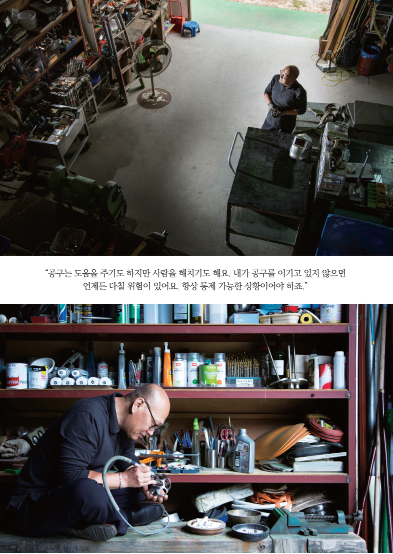 “공구는 도움을 주기도 하지만 사람을 해치기도 해요. 내가 공구를 이기고 있지 않으면 언제든 다칠 위험이 있어요. 항상 통제 가능한 상황이어야 하죠.”