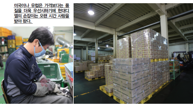 “지금으로서는 현대디엘은 생산성을 더욱 높여야 해요. 근래에 공장 이전을 하고 직원들이 새로운 환경에 적응을 못 해서 생산성이 낮다고 생각을 합니다. 그런데 이런 문제도 곧 해결될 것으로 예상해요. 공장 이전을 보니 철저한 준비로 아무런 문제가 없었거든요. 직원들의 철저함과 성실함을 확인할 수 있었죠. 그래서 큰 산을 넘을 것 같아 아주 기뻐요. 다른 외국 구매자들은 공장을 이전한다고 하니 공장 이전은 몇 개월이 걸린다며 걱정했지만 현대디엘은 불과 며칠 사이 완벽한 이전을 했죠.”