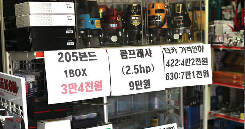 “처음에는 공구 판매도 물론 했지만 철거 공구 임대가 주 업무였거든요. 뿌레카(해머 드릴)나 링쏘, 코어드릴 같은 것들요. 현장 쪽 일도 그렇고 내가 그런 건 전문가거든요. 현장 일하는 사람들이 어떤 공구를 써야 하냐고 많이들 물어보더라고요. 그래서 입소문이 불처럼 일어났던 것 같아요.”