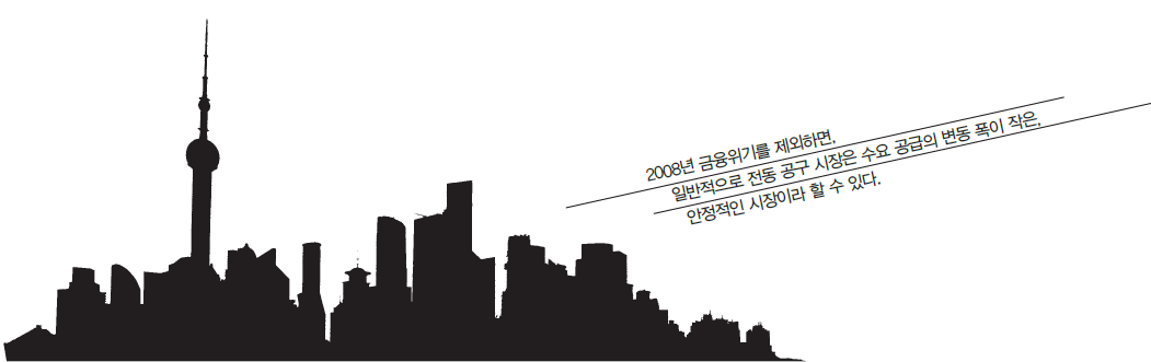 전동 공구업계의 특성을 살펴보면 전동 공구는 건설, DIY, 원예의 세 가지 분야에서 주로 사용되는 공구로서, 건설 시장이나 부동산 시장의 추세와 밀접하게 연관되어 있다. 2008년 금융위기를 제외하면 일반적으로 전동 공구 시장은 수요 공급의 변동 폭이 작은, 안정적인 시장이라 할 수 있다.