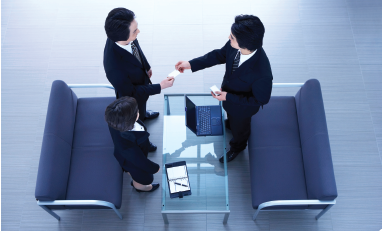 악수는 당당한 스킨쉽이다. 지나치게 허리를 구부리면 비굴해 보이거나 자신감이 없어 보인다. 오른손으로 하며 서열이 높은 사람에게 악수를 청할 때는 허락을 구한다.
